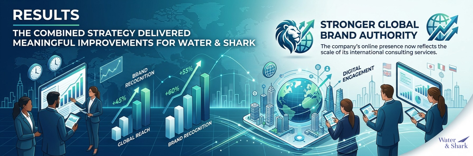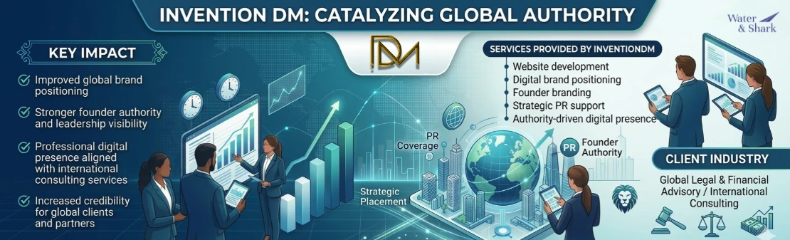 The combination of PR, branding, and digital strategy helped position Water & Shark as a trusted international consulting firm.